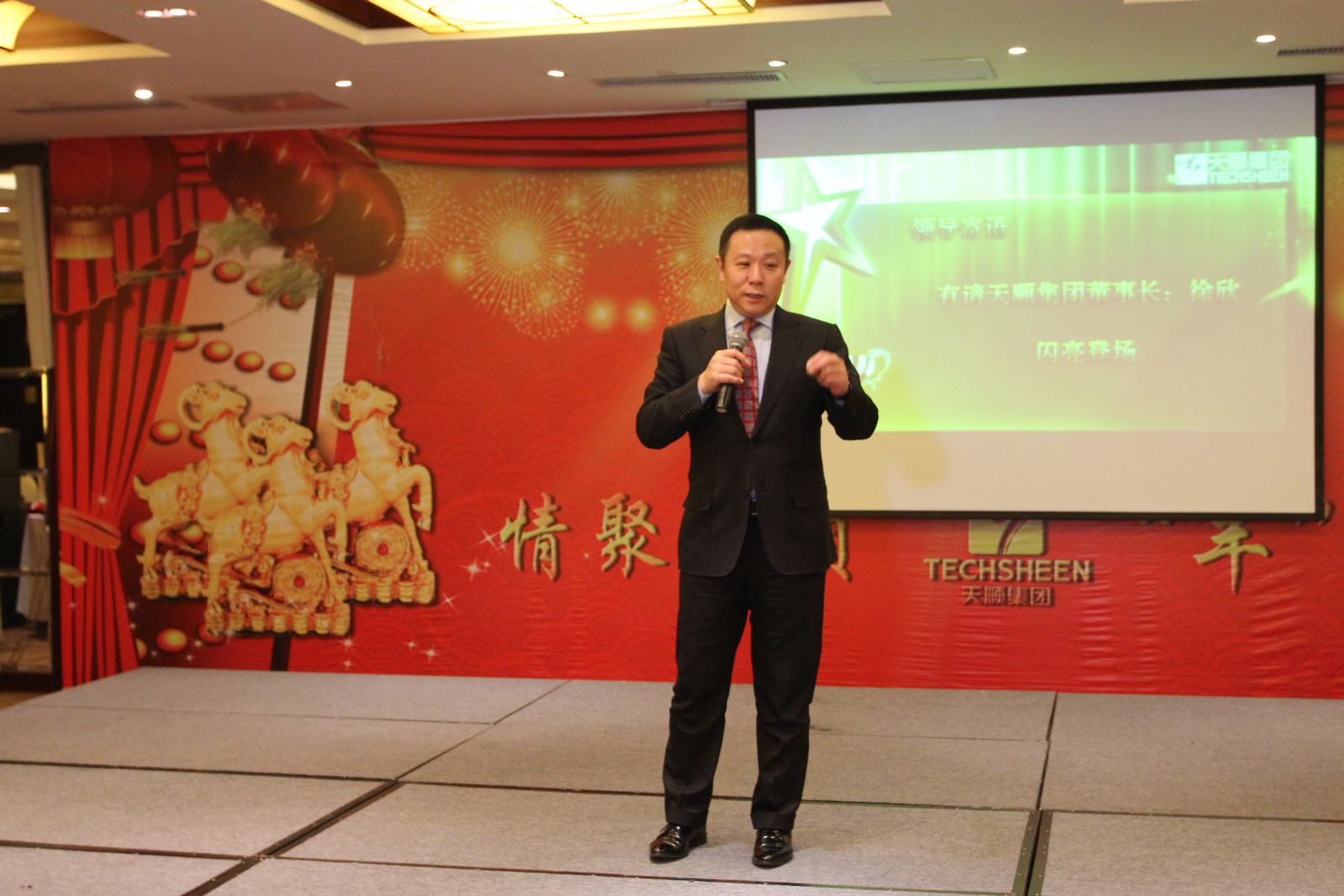 年會開始時,天順集團(tuán)董事長徐欣回顧了2014年集團(tuán)所取得的成績,對集團(tuán)及各所屬公司全體員工的努力和付出表示了由衷的感謝,并對2015的美好前景進(jìn)行了展望。